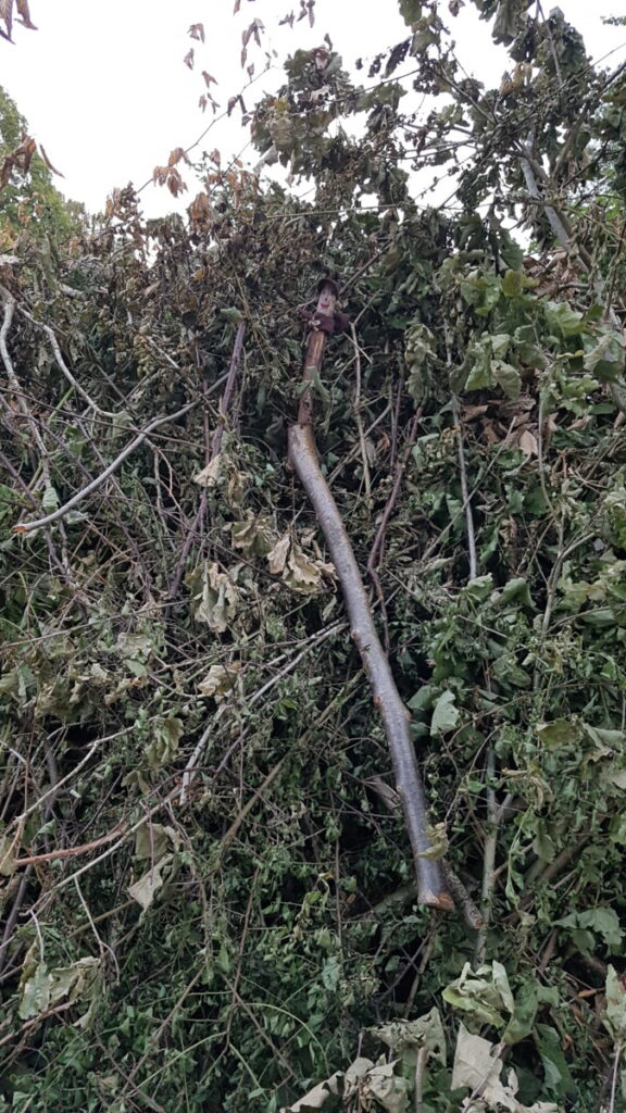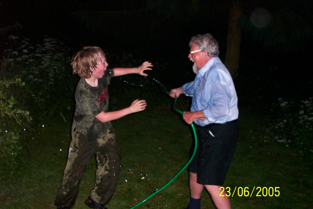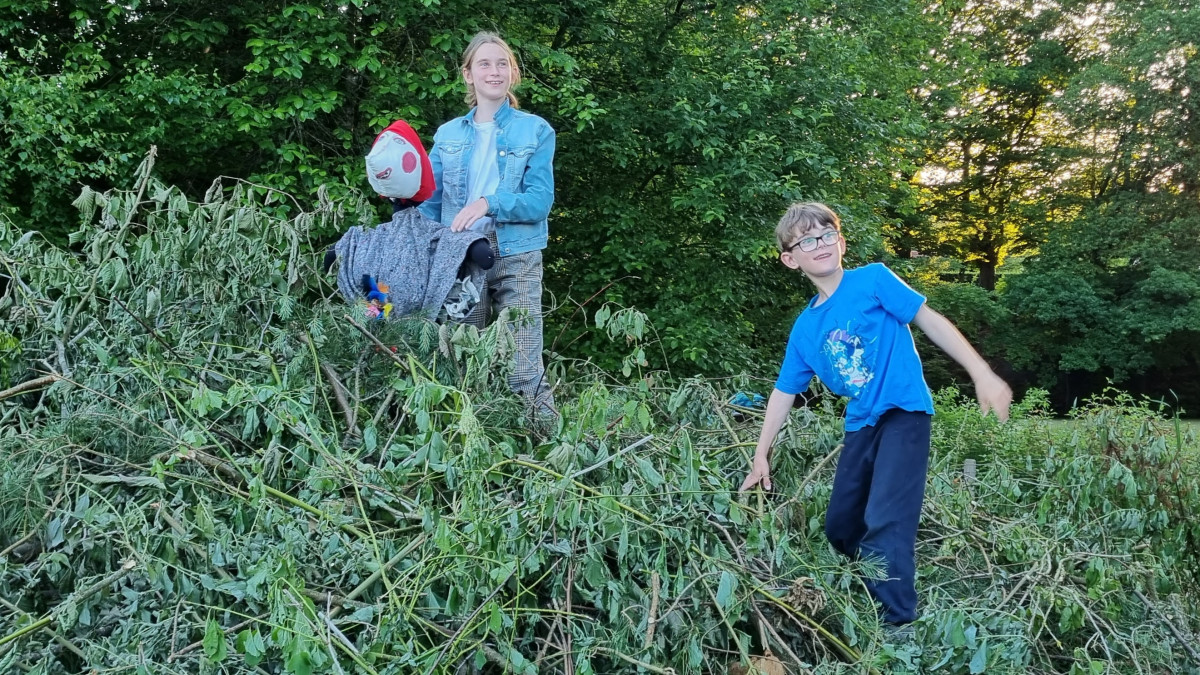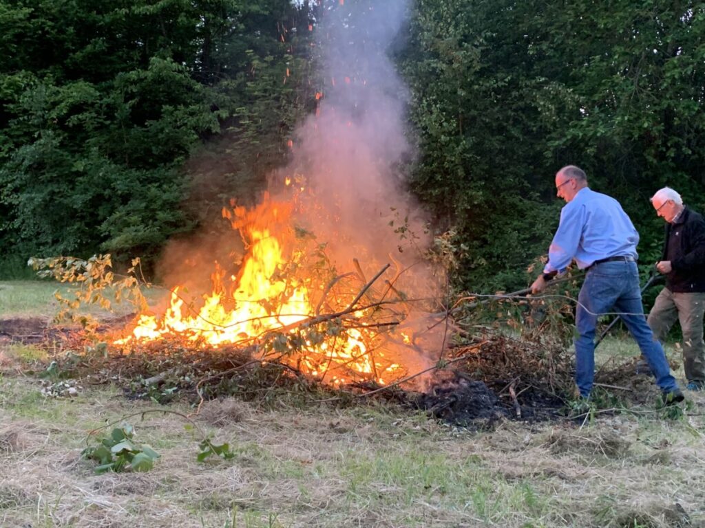 Kæmpebål, hvor hovedparten af grene var fældet 4 dage før. Vi kunne ikke få ild i bålet, men Skt. Hansvisen blev sunget. Her er lidt fotos: