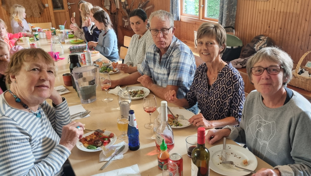 Sankt Hans-aften i 2025 blev afholdt i en mere børnevenlig udgave, nemlig kl. 18.30 med fællesspisning i BGG-hytten. Det skulle have været på fællesarealet , men det stod ned i stænger, så vi gik indenfor.