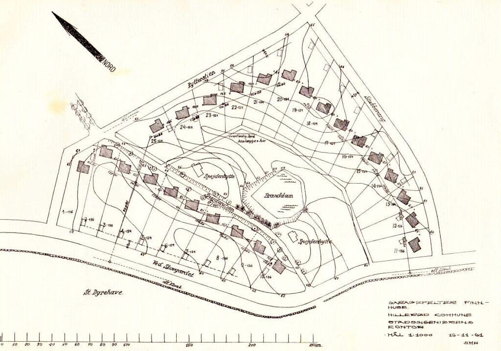 Kortet er fra 1961 og viser hvordan husene ligger rundt om søen: