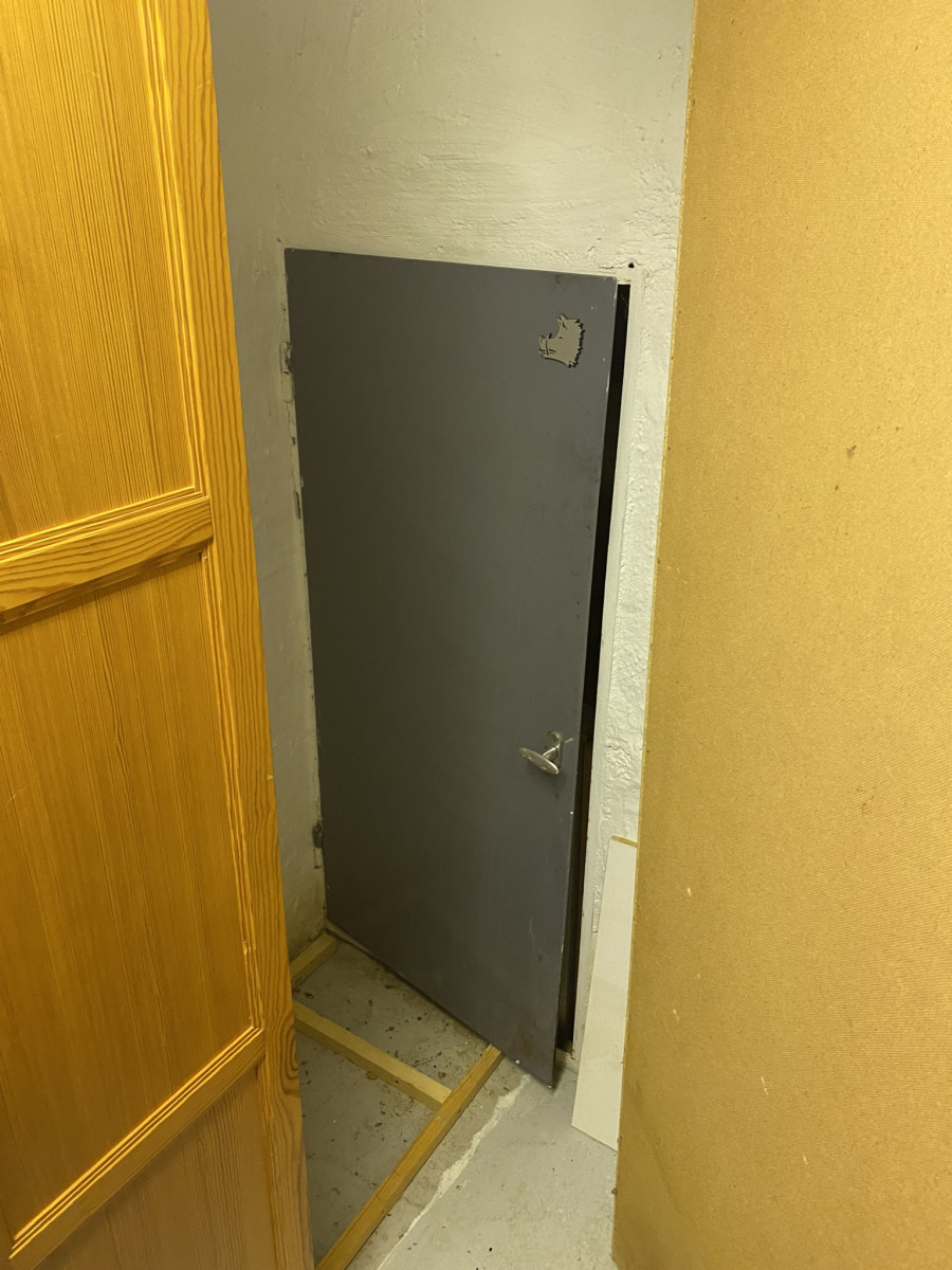 Der var efterladt skabe og reoler nede i kælderen og bag så de et håndtag. Skabene var skruet sammen og det pirrede Magnus nysgerrighed, det måtte åbnes. Det viste sig at være en metaldør med et lille rum, et slags skab! Var det et våbendepot? Næ, det var fyldt med radioer og ting og sager.