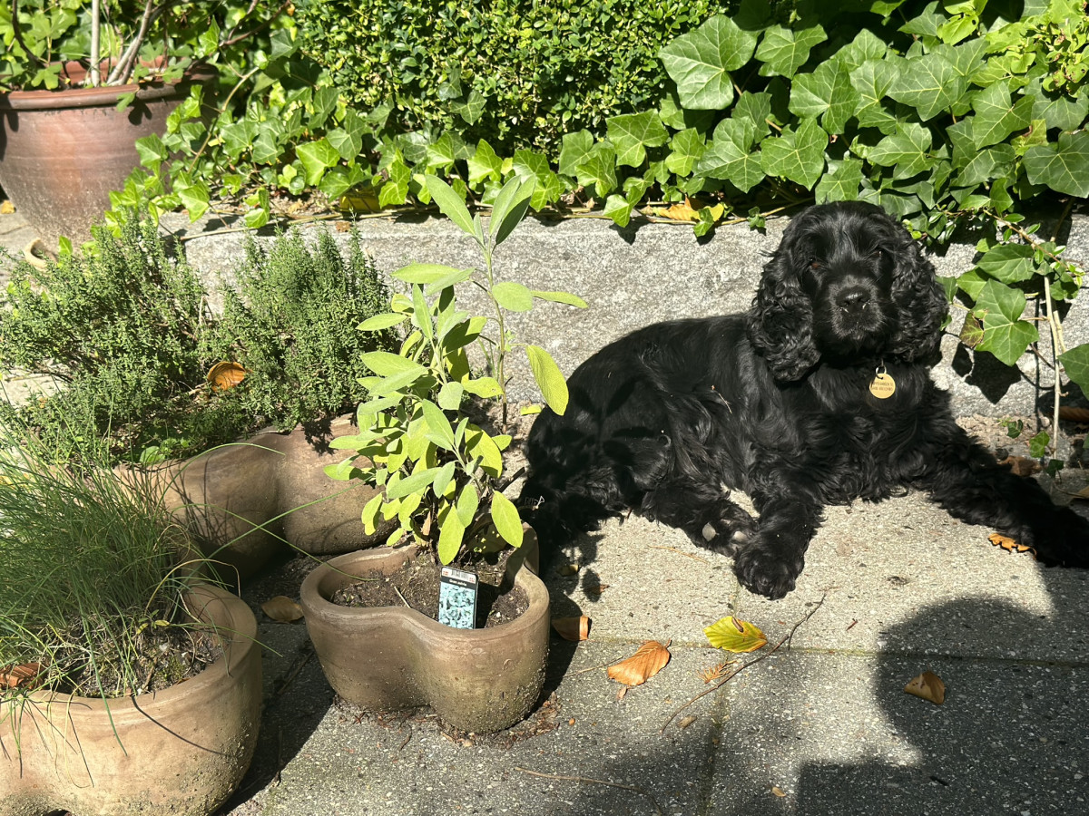 Alma, som ellers havde sin første levetid i en lejlighed, er en udendørshund. Hun har været med på spejderture, vandringer, friluftsliv og elsker det.