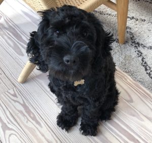 Vi dukker op kl. 19 hos Lise og Martin en hverdag i marts. Det er mørkt udenfor, men hyggeligt indenfor. Bulder er ellevild af glæde over, at der er besøg og vimser rundt om benene på os.