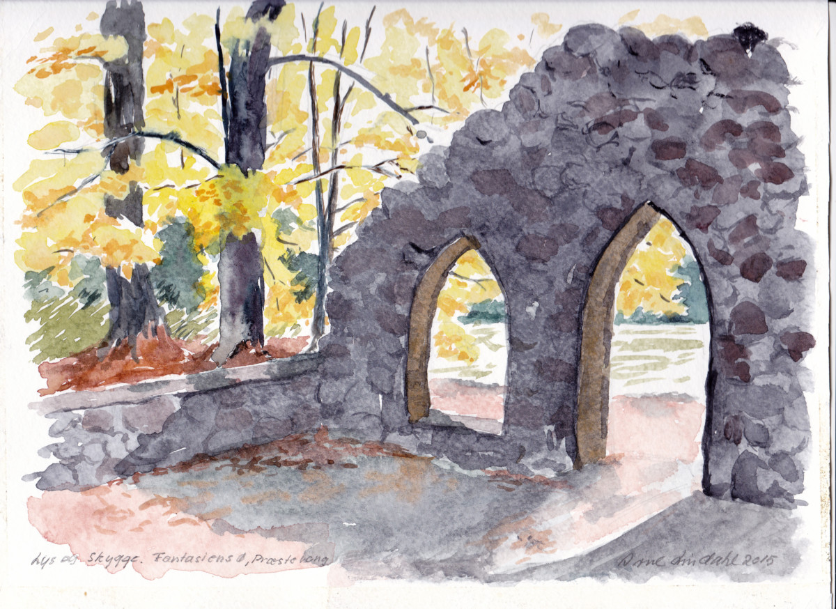 Her er fotos fra Brededam, akvarel af palæhusets gavl, samt Præstevangs hundeskovs areal: