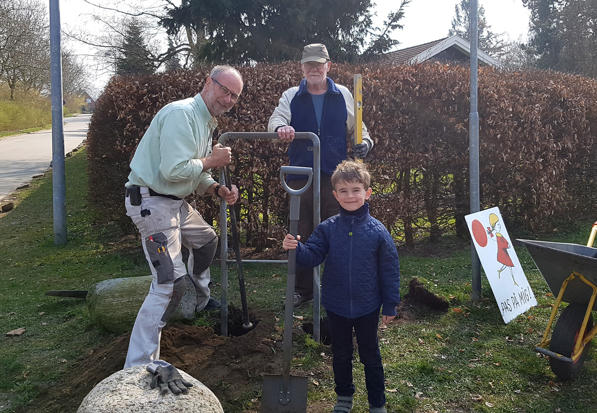 Kirsten gjorde opmærksom på, at de andre skilte også var falmet og faktisk helt uden farve. Derefter har Kirsten malet alle skiltene op! Den 6. april 2019 er alle 5 skilte renoveret og sat op. En kæmpe tak til Kirsten for den hurtige og flotte renovering af skiltene