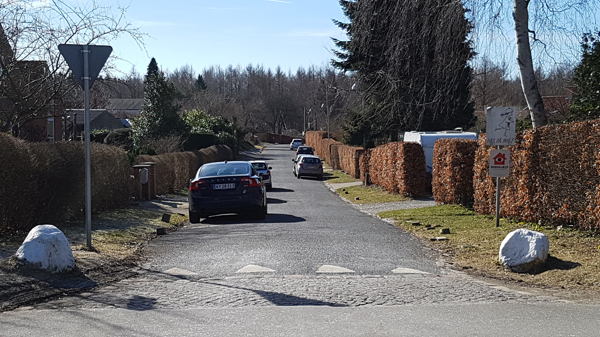 Et vigtigt særpræg ved Finnhuse-området er veje uden fortov. Læs her om intentionerne, der blev udtænkt allerede ved starten på Finnhuse-området!
